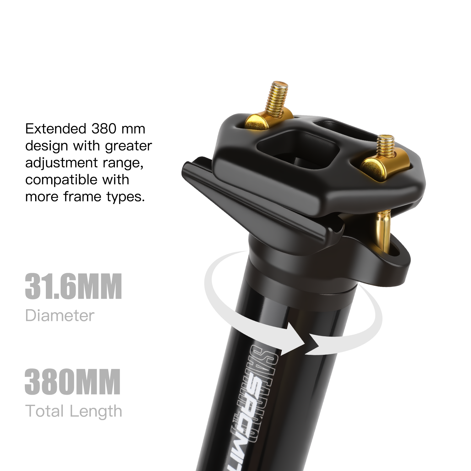 Made of premium aluminum alloy with 2.2 mm wallthickness for solid support without deformation,Extended 380 mmdesign with greateradjustment range,compatible withmore frame types.