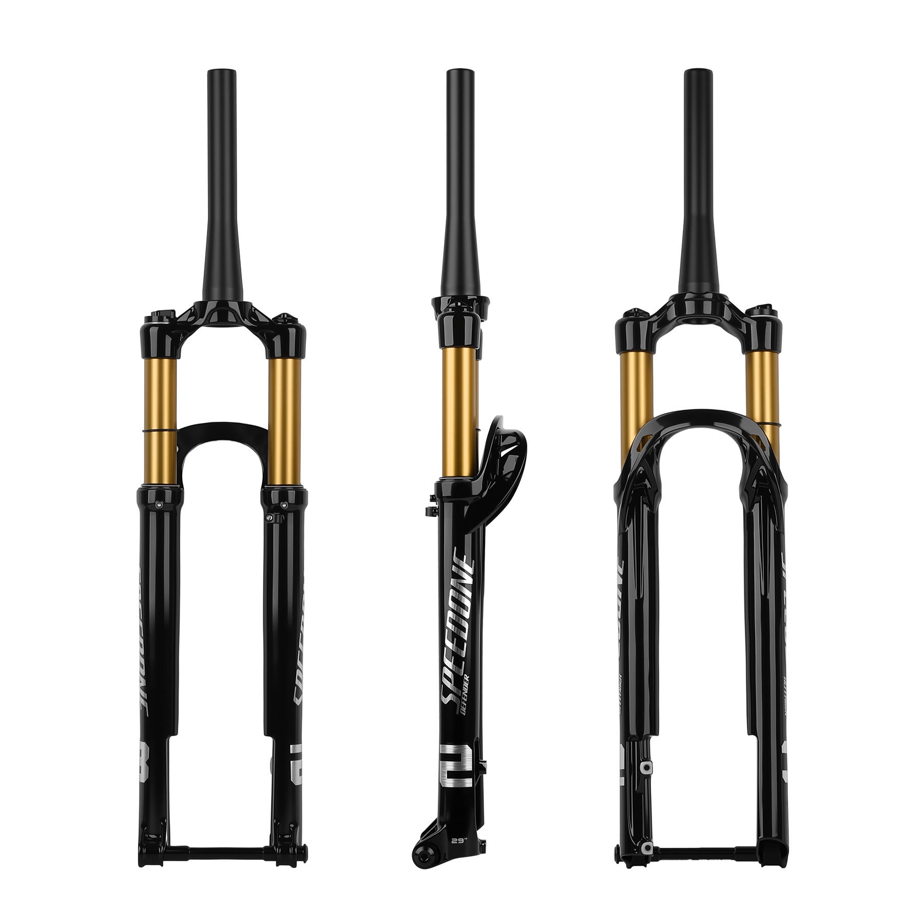 Rear axle air pressure front fork, — designed for off-road and mountain biking, air pressure damping. BOOST dropout, high open rear ax design, through CNC precision cutting process to achieve a lighter overall weight without sacrificing strength.