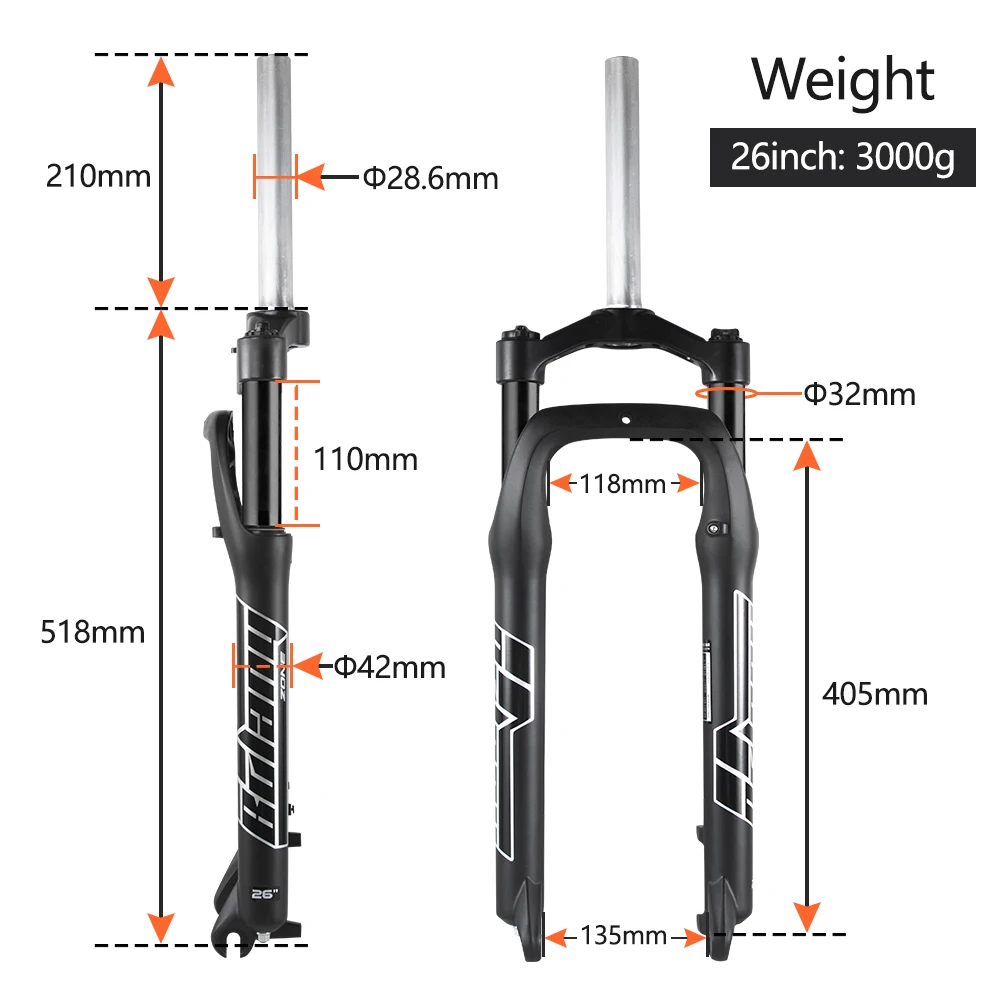 兼容性:适用于电动自行车,确保在雪地上的最佳驾驶体验。 价格实惠:机械叉更易于购买,为雪地自行车手提供经济实惠的解决方案。 简化维护:机械叉易于维护,这对冬季冒险至关重要。 Fat Bike叉|26 Fat Bike叉|冬季可靠性:专为冬季条件设计,这款叉子确保在雪地上提供可靠的悬挂。 地形管理:支持各种地形,从柏油马路到雪地条件。