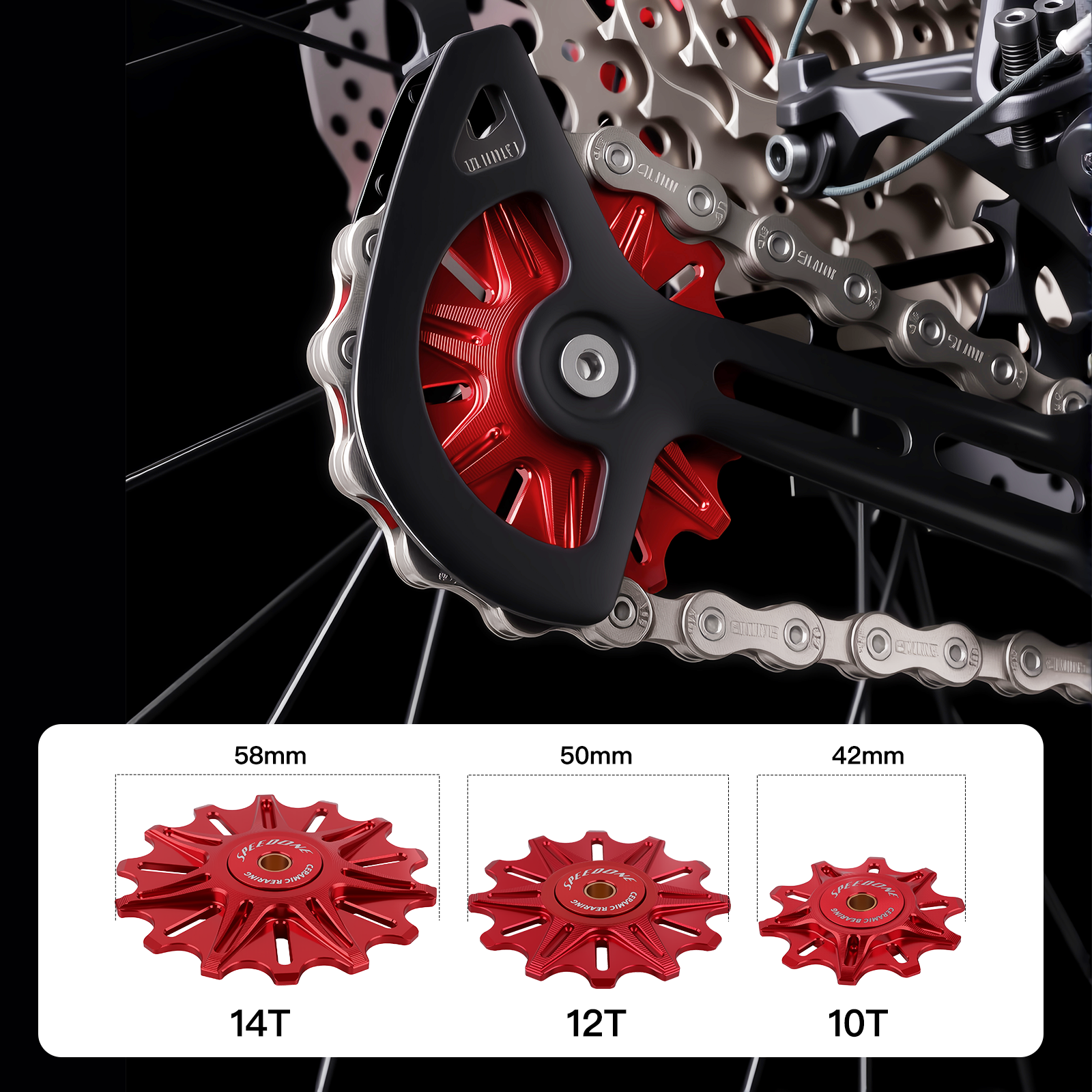 One-piece casting full CNC precision milling process, gear surface accuracy ±0.01mm ensures smooth shifting, anti-chain jumping and chain jamming; 5mm standard inner diameter fits 99% of the market bicycle rear derailleur shaft, 5 minutes quick installation without tools.